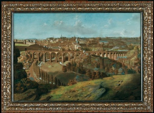 La vue de la ville de grand format est pittoresque. Elle montre de petits détails anecdotiques tels que des ouvriers, leurs véhicules et leurs bêtes de somme. Cette œuvre a été réalisée avant le démantèlement de la forteresse. Le viaduc et la ville étirée en arrière-plan ont un aspect majestueux et confèrent à la ville un caractère à la fois pittoresque et fort.