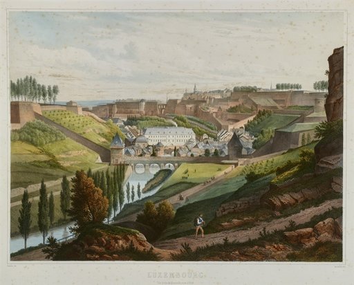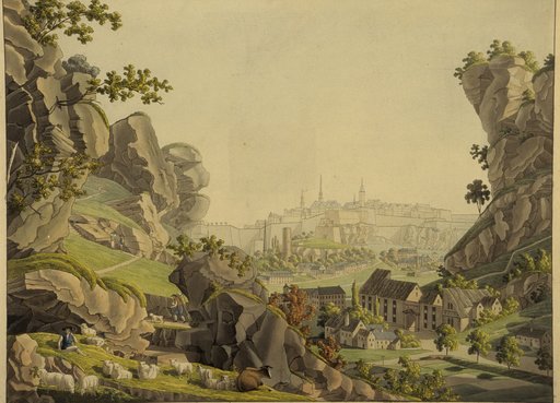 Nicolas Liez was also a pupil of Jean-Baptiste Fresez. He trained as a lithographer and went on to study in Charleroi, Mons and later Paris, where he learnt watercolour techniques. He is best known for the publication, between 1834 and 1836, of a series of around fifty lithographs, published under the title Voyage pittoresque à travers le Grand-Duché de Luxembourg (Picturesque Journey through the Grand Duchy of Luxembourg), eight of which show views of the city. Liez then worked as an engraver at the Boch pottery factory before opening his own workshop. In 1860, he bought the Audun-le-Tiche pottery, which quickly went bankrupt. He left Luxembourg in 1870 to become artistic director of the Villeroy & Boch factory in Dresden.