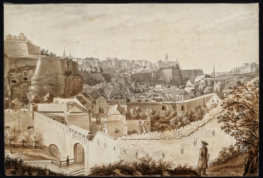 Jean-Baptiste Fresez came to Luxembourg from Longwy in 1802. In 1822, he studied drawing at the Brussels Académie de Dessin, then returned to Luxembourg and became a professor at the municipal academy. In 1848, he received Luxembourgish citizenship from William II, King of the Netherlands and Grand Duke of Luxembourg. Alongside his teaching, Fresez also pursued his own artistic work: today he is considered one of the most important Luxembourg painters and illustrators of the 19th century. Many artists, including Jean-Nicolas Bernard (1803-1866) and Nicolas Liez (1809-1892), were Fresez's students. Fresez's views characterised the Luxembourg city views of the 19th century and were often imitated and engraved or lithographed.